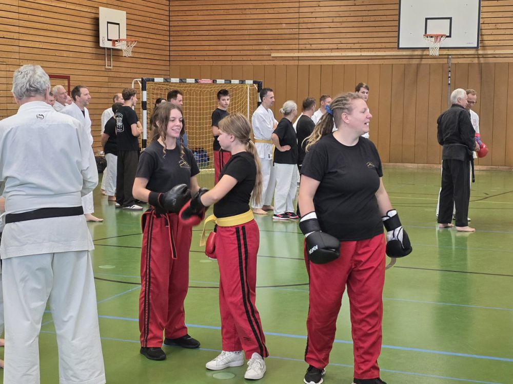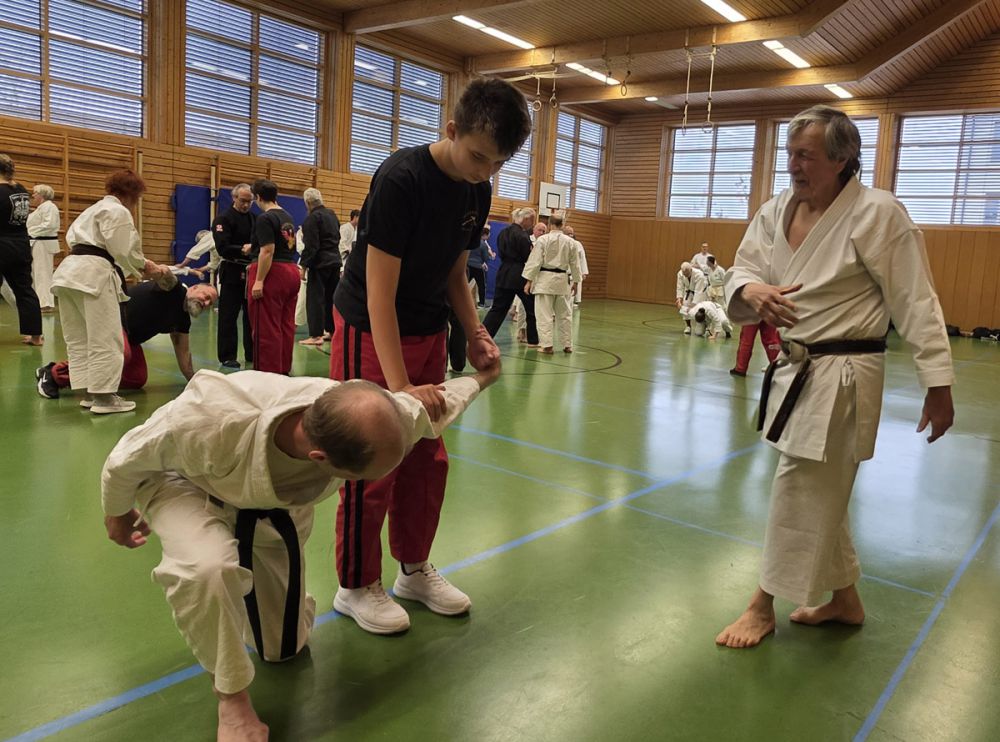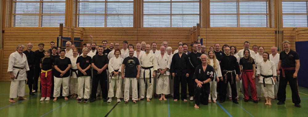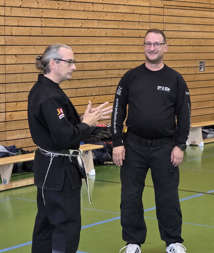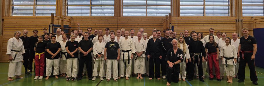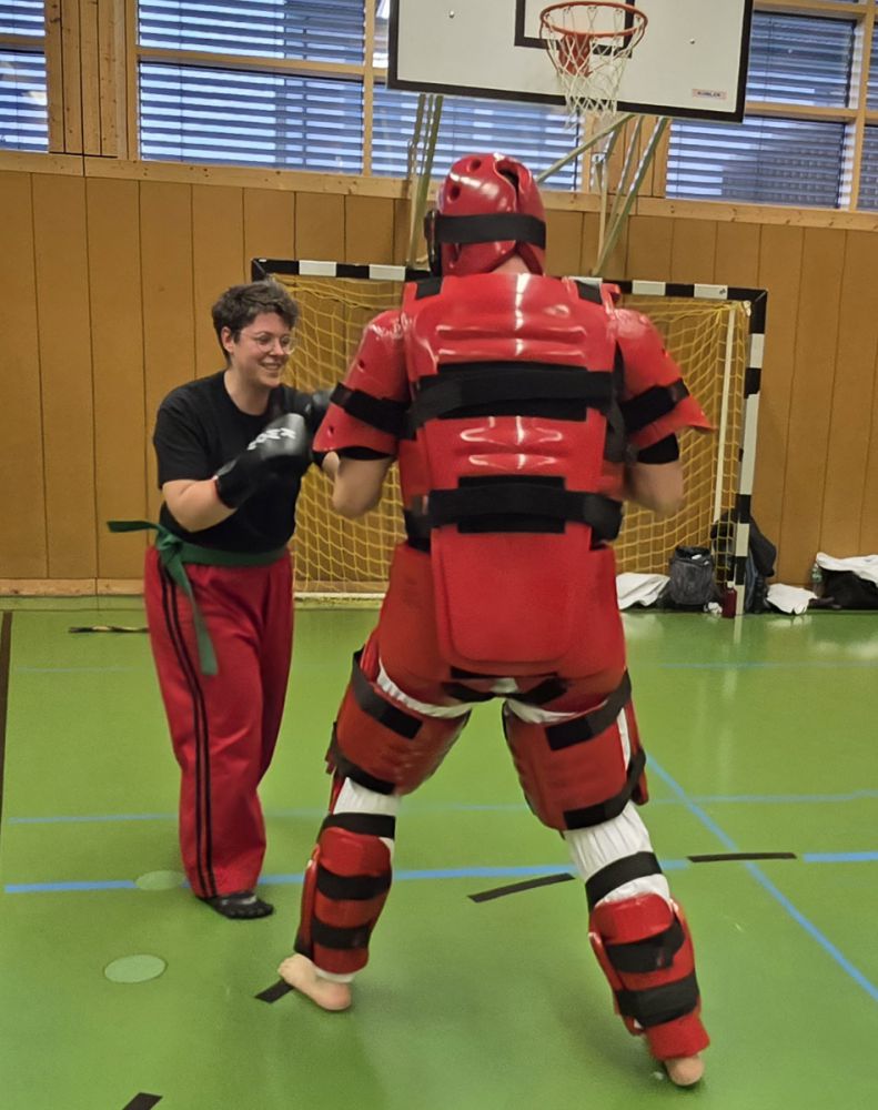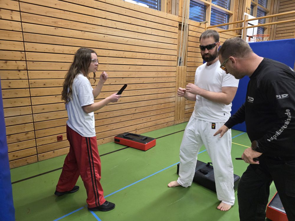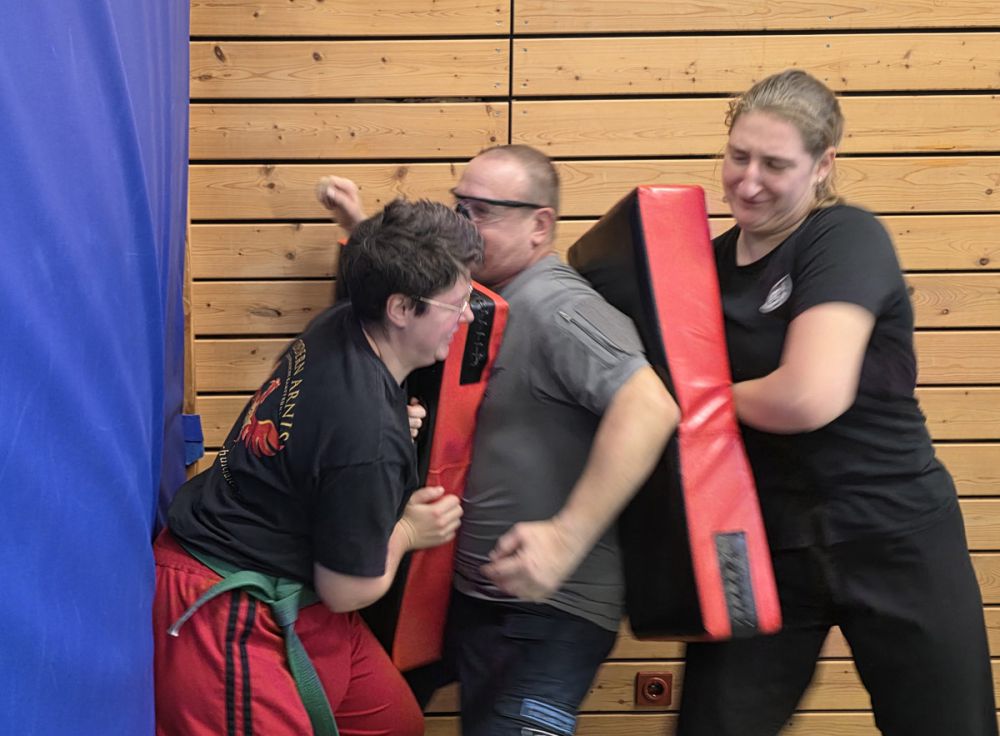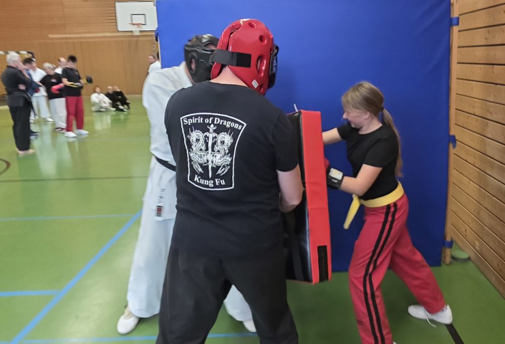 Am 25.10.2025 fand der Streetdefense-Lehrgang Vol. 8 in der Schulturnhalle in Pilsach statt. Los ging es mit der Trainingseinheit von Norbert Beyerlein, in welcher es um Grundschule und Befreiungstechniken aus dem Karate ging. Danach führte Alfred Heubeck das Thema weiter und zeigte uns verschiedene Folgetechniken wie etwa Hebel und Würfe. Im Anschluss demonstrierte Ingolf Richter Techniken gegen Angriffe an der Wand, wobei dann allen die Überschrift seiner Einheit "die Wand mein Freund" schnell neue Erkenntnisse brachte. Denn es kann durchaus sehr hilfreich sein, eine Wand im Rücken zu haben.