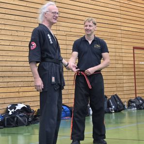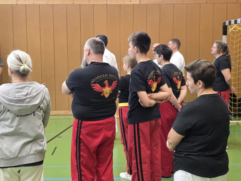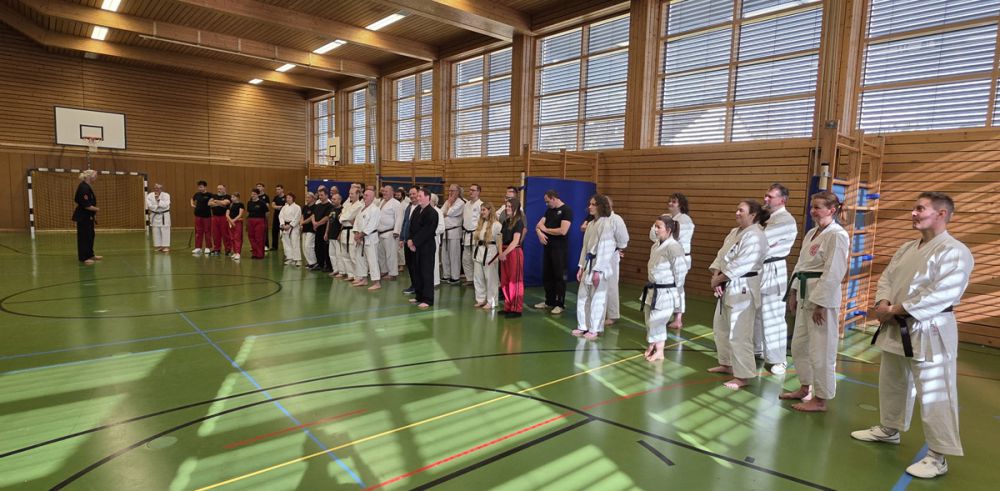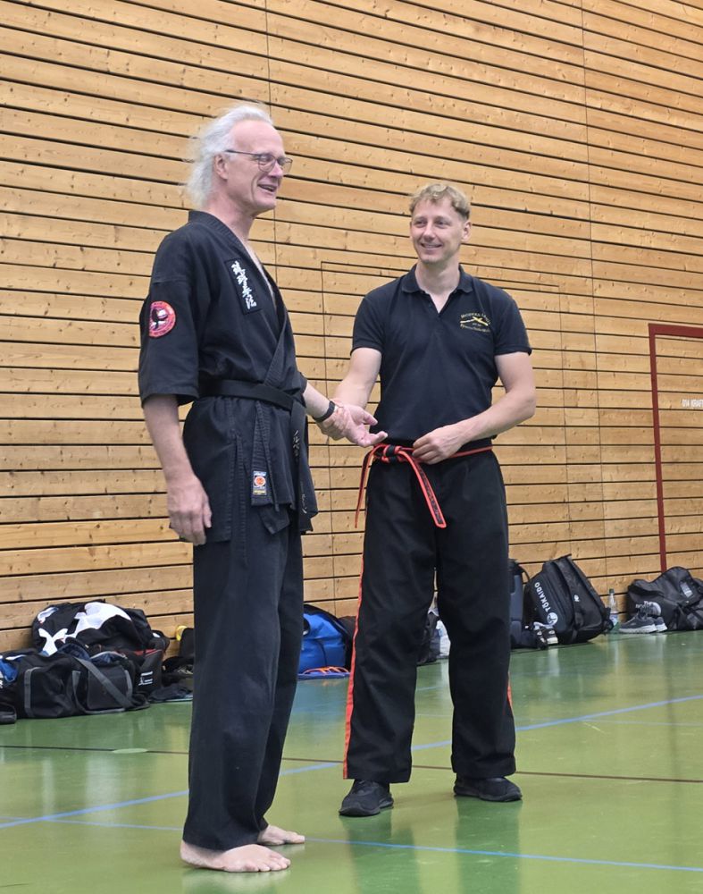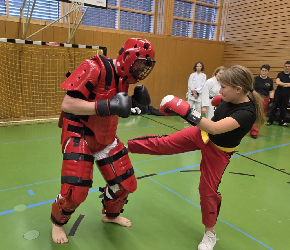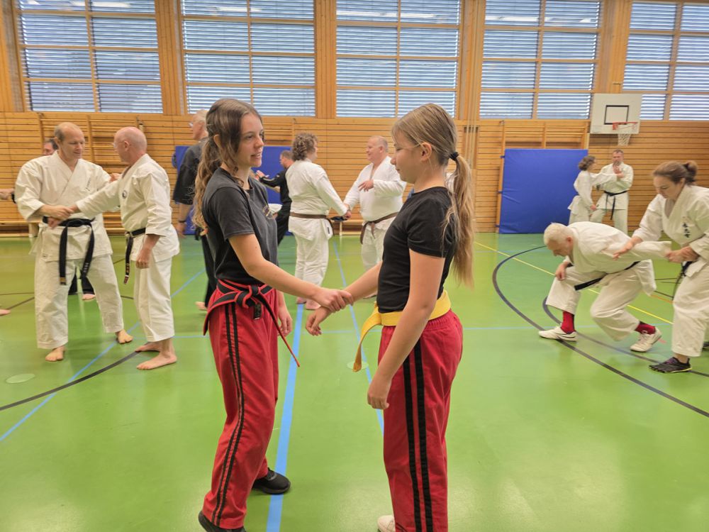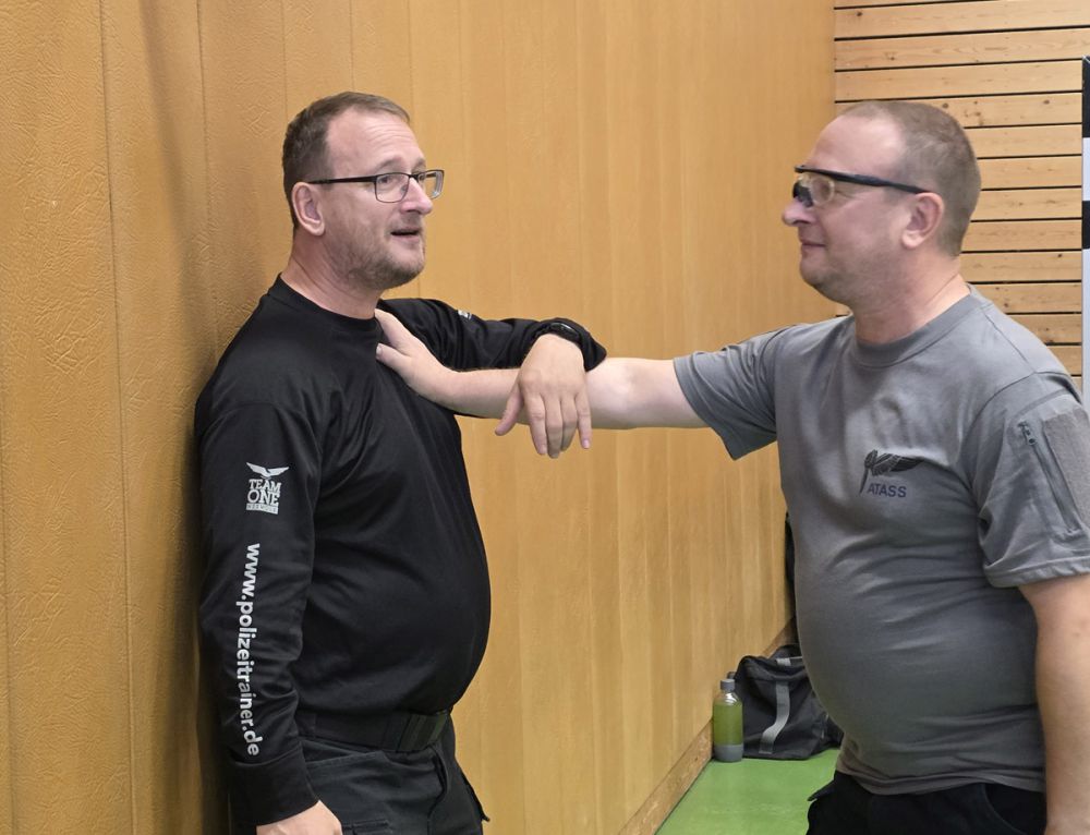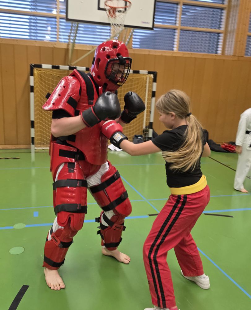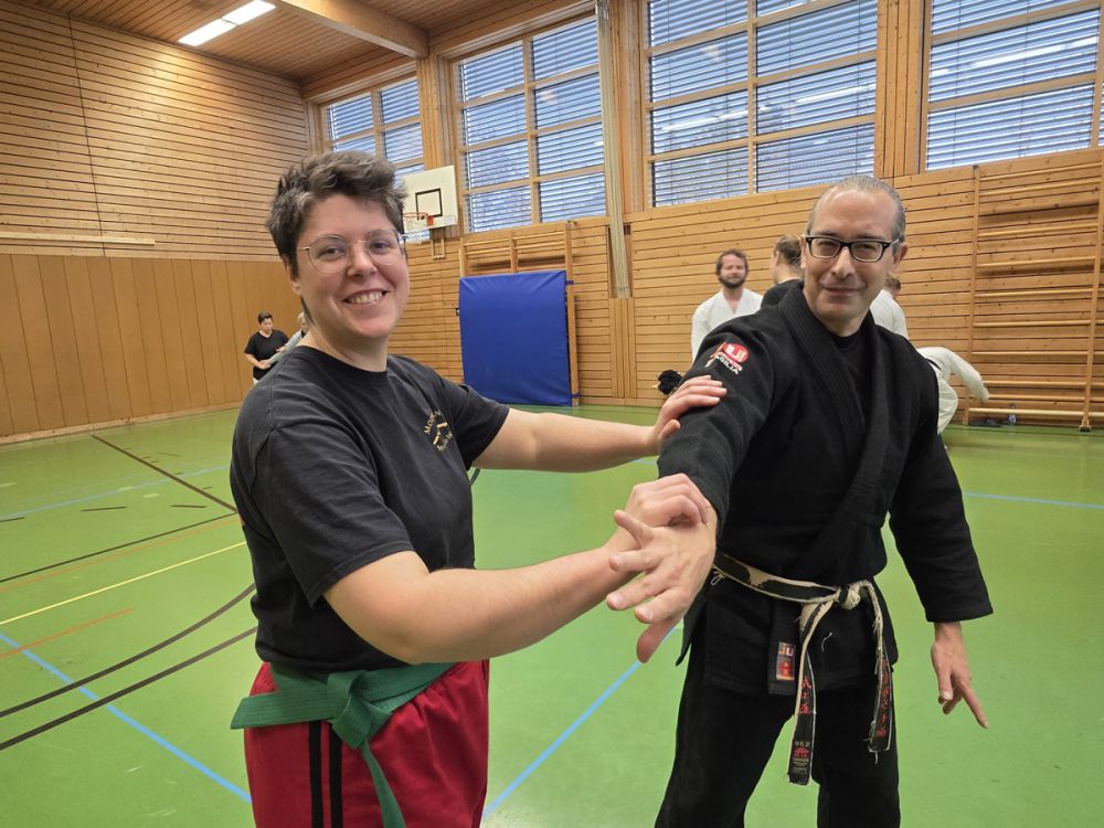 Am 25.10.2025 fand der Streetdefense-Lehrgang Vol. 8 in der Schulturnhalle in Pilsach statt. Los ging es mit der Trainingseinheit von Norbert Beyerlein, in welcher es um Grundschule und Befreiungstechniken aus dem Karate ging. Danach führte Alfred Heubeck das Thema weiter und zeigte uns verschiedene Folgetechniken wie etwa Hebel und Würfe. Im Anschluss demonstrierte Ingolf Richter Techniken gegen Angriffe an der Wand, wobei dann allen die Überschrift seiner Einheit "die Wand mein Freund" schnell neue Erkenntnisse brachte. Denn es kann durchaus sehr hilfreich sein, eine Wand im Rücken zu haben.