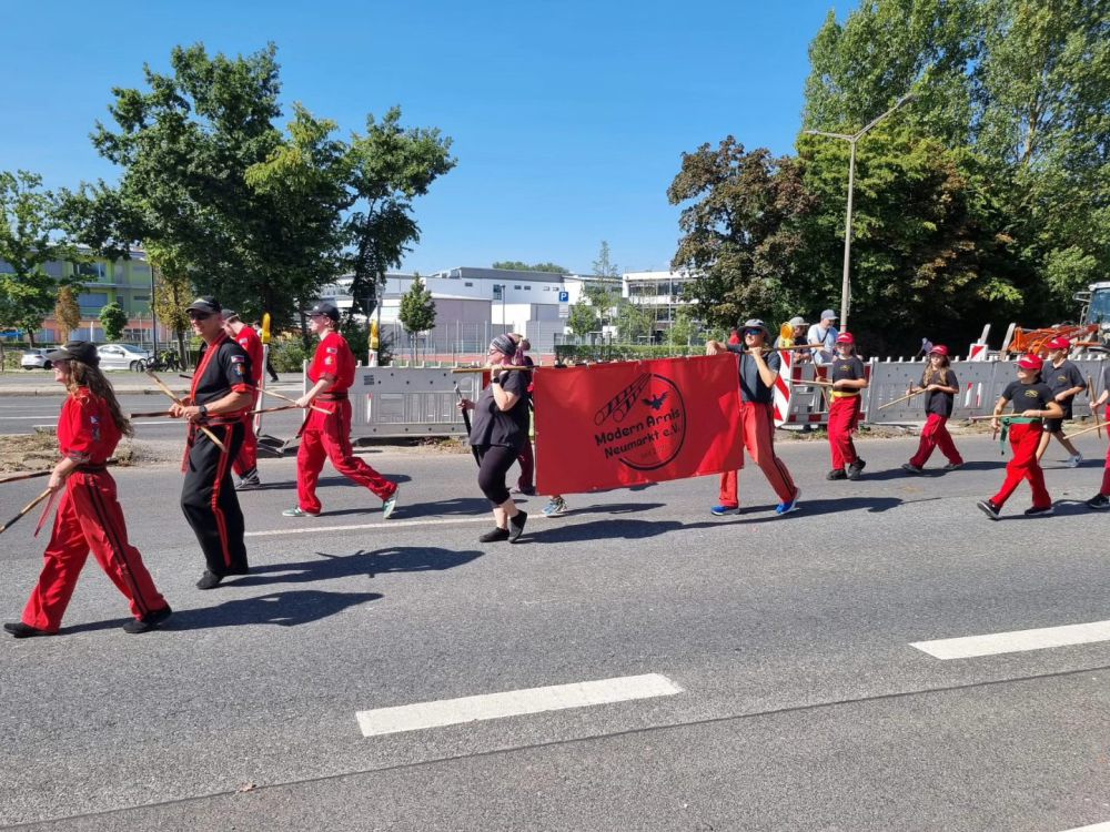 Unser neu gegründeter Sportverein in Neumarkt in der Oberpfalz der "Modern Arnis Neumarkt e.V." war heuer das erste Mal beim Neumarkter Volksfestzug dabei und hat mit knapp 40 Kindern, Jugendlichen und Erwachsenen eine sehr gute Show abgeliefert. Das Wetter war sehr schön und die gute Stimmung unter den Teinehmern und die Begeisterung der Zuschauer hat alle sehr motiviert. Wir freuen uns auf das nächste Jahr und sind gerne wieder mit dabei!